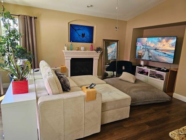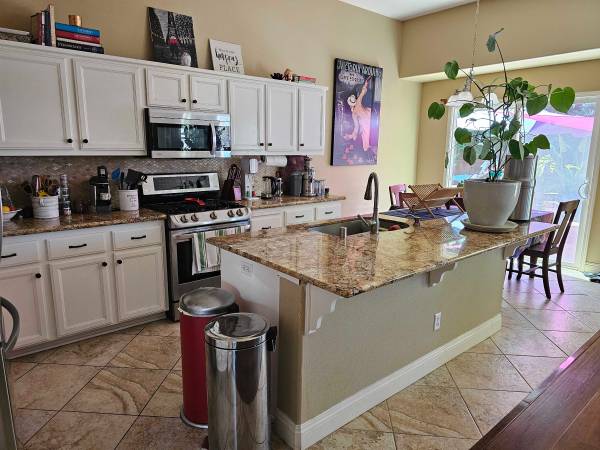 The home is in a safe community with 24/7 security patrol. The home has central A/C and heat, a dishwasher, various kitchen appliances (juicer, blender, air fryer, SodaStream for making sparkling drinks, and an espresso machine), a gas stove, and a 2nd fridge in the garage. A Traeger grill is available for grilling in the backyard. A full body gym is in the garage that you are free to use. We have a fun, friendly and neutered German Shepard. No other pets please.