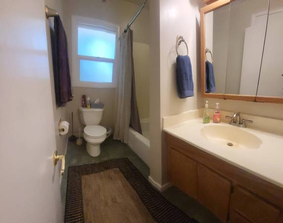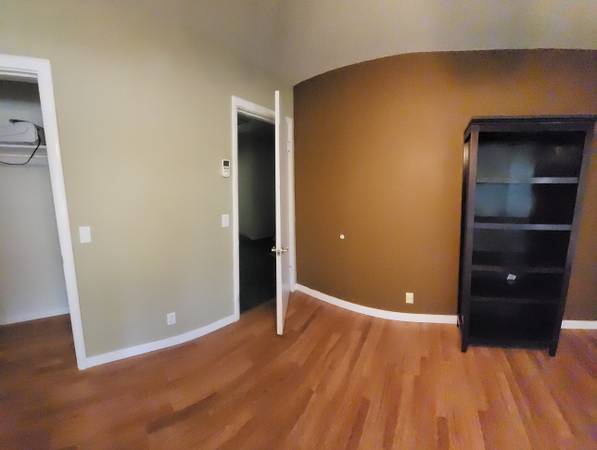 Bright, spacious room is available in our modern home, perfectly suited for a responsible person. Features soft neutral tones, great natural light, and 3 Large windows with a view of trees and grass.