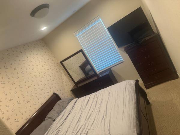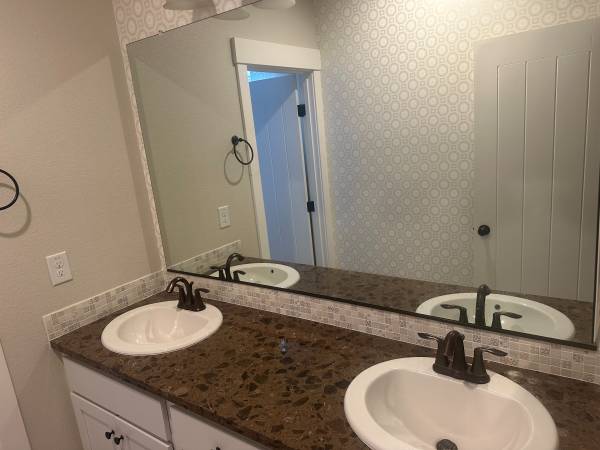 Modern 3 bed / 2.5 bath home (built 2018). Unfurnished bedroom large enough for a queen bed(same size as the pictured furnished room but you room would come unfurnished). Shared bathroom with dual sinks and private toilet/shower area. Washer/dryer next to room. This is a LGBTQ+ Friendly household. Looking for someone to stay 6+ months.