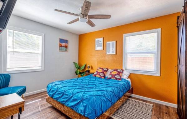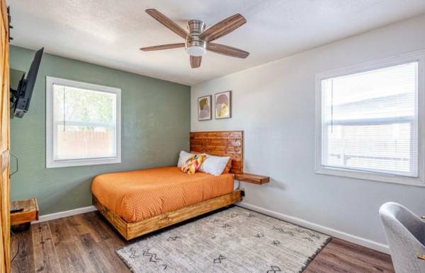 I am looking for 1 or 2 housemates to live in a 3-bed, 1 bath house with me. Both of the 2 bedrooms pictured are available. I occasionally stay in the 3rd (not-pictured) room. The bedroom with the orange comforter and green wall is $1000/month. The bedroom with the blue comforter and orangey wall is $950/month cause it is a little smaller. If you want to rent out both rooms for yourself (one person) it would be $1800/month. The house is located in Oak Park, near the UC Davis medical center.