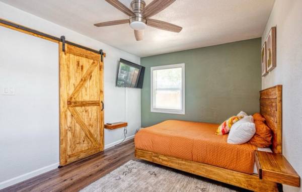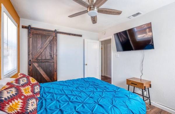 Both rooms have queen bed frames and the blue comforter room has a smart TV, which you are welcome to use. Very good pets possibly considered. You would be able to store things in the garage. There is a washer/dryer in the garage as well.