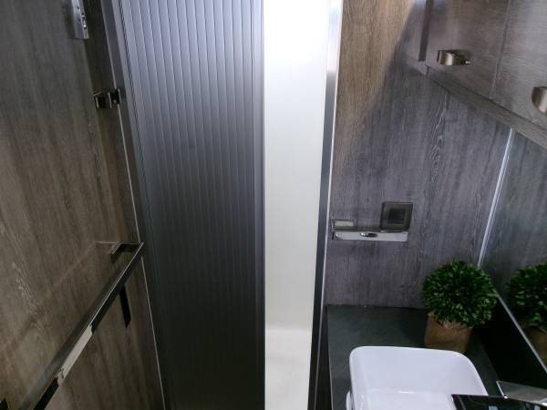 You won't believe how convenient it will be to explore and adventure with this Black Series Camper travel trailer! A sliding door separates the full rear bathroom from the rest of the interior and allows you to have some privacy as you get ready each morning. You will be able to grab a cup of coffee from the full kitchen and then sit down on the lounge dinette to enjoy your breakfast before heading outside. Whether you're staying indoors for the day or venturing outside to soak up the sunshine, you will be able to always listen to your favorite music because of the interior and exterior speakers that have been included.