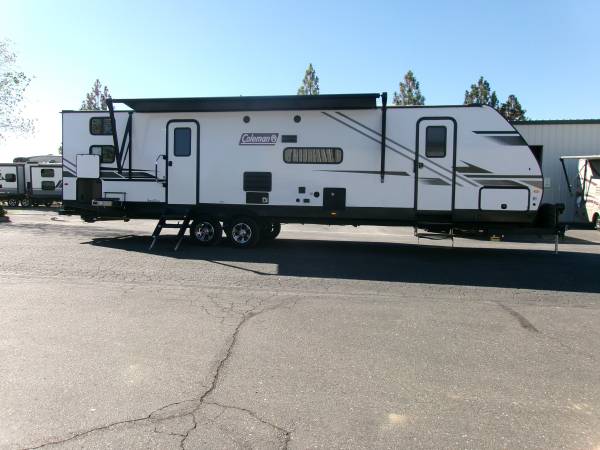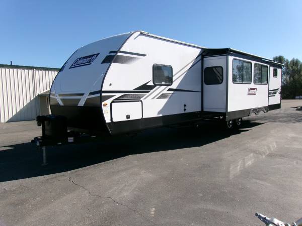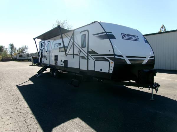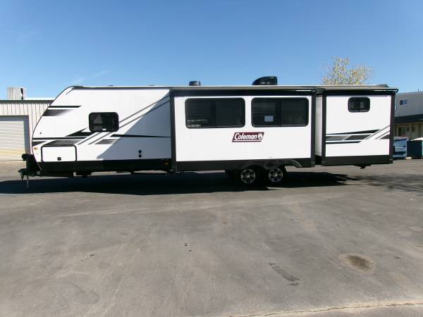 THIS 2023 KEYSTONE COLEMAN 3215BH 2 BEDROOM TRAVEL TRAILER IS IN GOOD CONDITION!! THE COLEMAN IS EQUIPPED WITH 2 SLIDES WITH TOPPERS, THE BUNKROOM THAT SLEEPS 5, FIREPLACE, DUAL ENTRY, HUGE PANTRY, SLEEPS 8, WALK AROUND QUEEN BED, TV, ELECTRIC LEVELING JACKS, BACK UP CAMERA READY, OUTDOOR GRILL, OUTDOOR SHOWER, ELECTRIC AWNING, OUTDOOR SPEAKERS, AND MUCH MORE!!