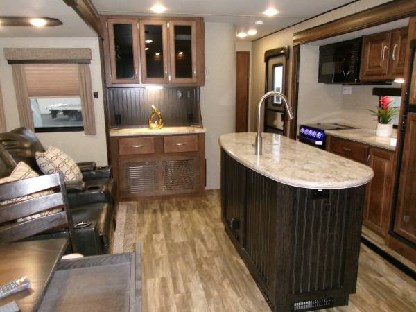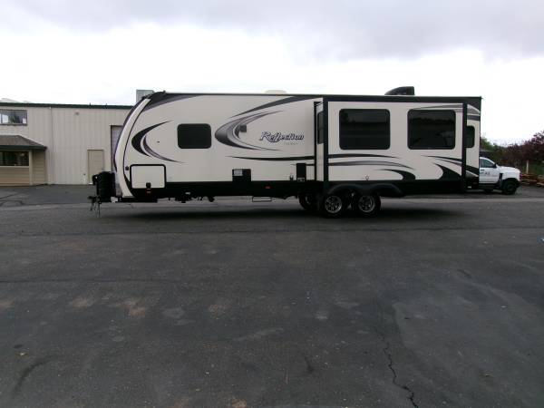 THIS 2018 GRAND DESIGN REFLECTION 297RSTS 2 SLIDE TRAVEL TRAILER IS IN EXCELLENT CONDITION!! THE GRAND DESIGN DOES IT RIGHT WITH ALL ITS LUXURY FEATURES!! IT IS EQUIPPED WITH A KITCHEN ISLAND, WASHER/DRYER, TONS OF COUNTER SPACE, 50" TV, FIREPLACE, LEATHER SOFA BED, LEATHER RECLINERS, OUTDOOR KITCHEN, ELECTRIC LEVELING JACKS, OUTDOOR TV, OUTDOOR SPEAKERS, BACK UP CAMERA READY, AND MUCH MORE!!