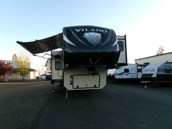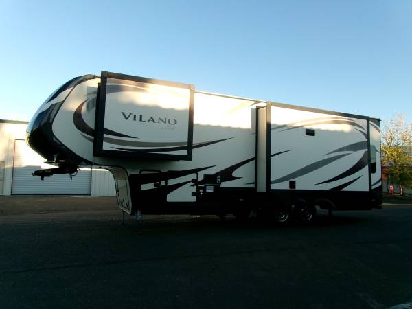 THIS 2017 VANLEIGH VILANO 325RL 3 SLIDE 5TH WHEEL IS EXTREMLY LUXIOURIOUS AND VERY WELL MAINTAINED. THE VILANO IS EQUIPPED WITH A WALK AROUND KING BED, WASHER/DRYER HOOKUPS, SOLID WOOD CABINETS, FIREPLACE, LEATHER SOFA SLEEPER, LEATHER RECLINERS, KITCHEN ISLAND, RESIDENTIAL REFRIGERATOR, CENTRAL VAC SYSTEM, DUAL AC'S, FRAMLESS WINDOWS, OUTDOOR SPEAKERS, ELECTRIC AWNING, ELECTRIC LEVELING SYSTEM, AND MUCH MORE!!