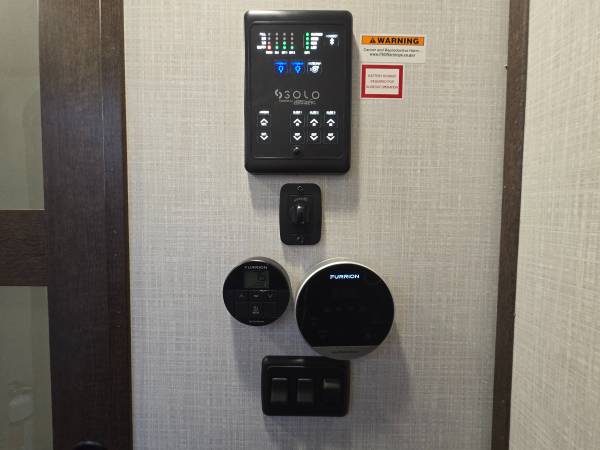 β’ Power awning with LED lighting, exterior speakers, and huge pass-through storage