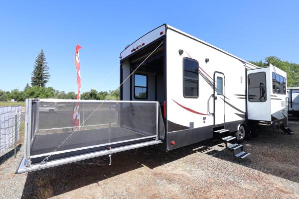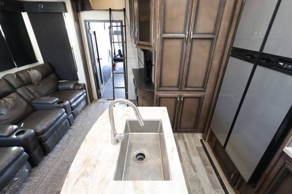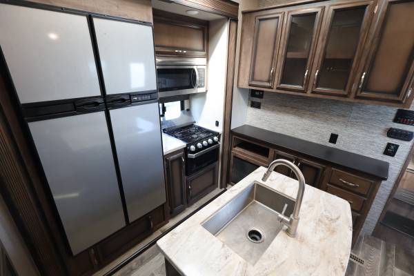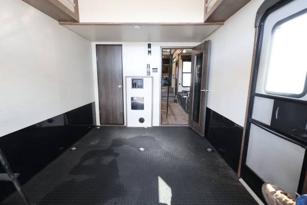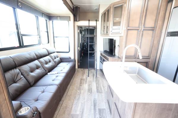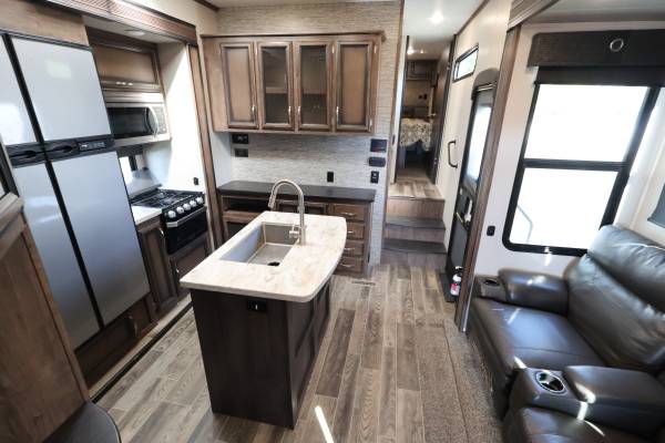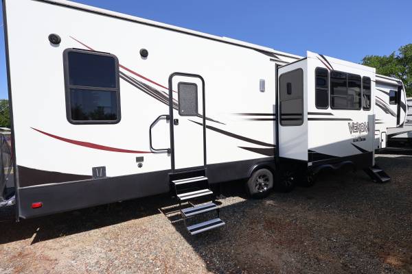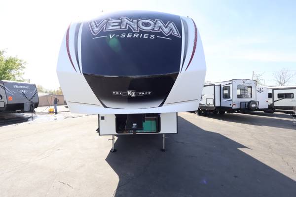 Whether you’re bound for the trail, the track, or the great unknown, KZ’s all-new Venom V-Series gets you there in comfort and style. A more affordable version of the Venom, the 101 inch wide-body V-Series offers a lot of similar features, in a more compact model with multiple opposing slides that create a grand feeling of spaciousness. It also offers a mix of sleeping, kitchen and living layouts. Generator, auto-leveling, king beds, and a residential kitchen with glazed cabinets come standard, with available options like fireplace and central vacuum.Features may include:Interior