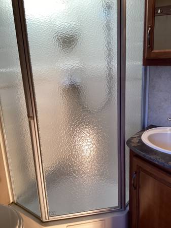 GLASS ENCLOSED SHOWER/VANITY W/MIRRORED MED. CABINET