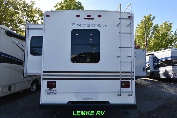 One Beautiful Entegra Odyssey 29V Class C Motorhome Floorplan!! Beautiful Interior and Exterior design with Front Cap built in Skylight. Features on Board Generator with about 72 hour and has only around 10,079 miles!! With the Rear Bed, Front Cabover Loft, Sofa bed and Convertible Dinette it Can Sleep up to 8!! Perfect for family & friends! Has many features and amenities!! Won't last long!!! *We recommend calling to confirm availability, (916) 259-2694.
