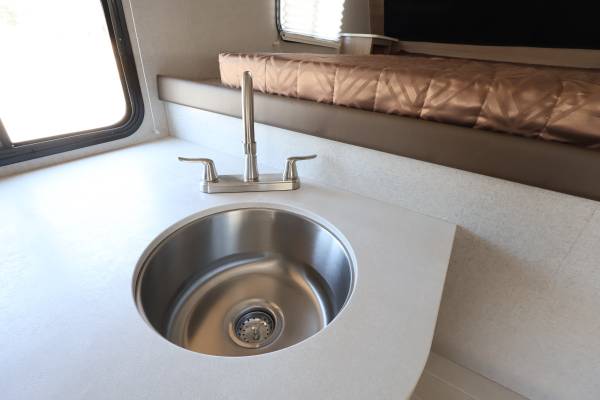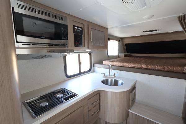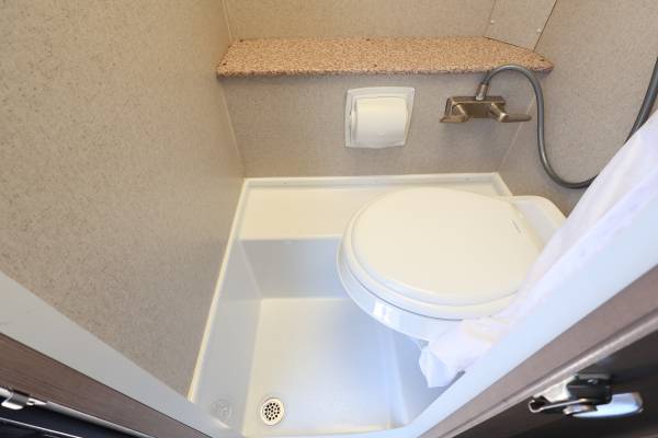 Self-contained and full featured, the Adventurer 80RB truck camper incorporates a comfortable bathroom complete with shower and toilet as a standard feature.