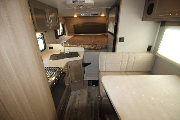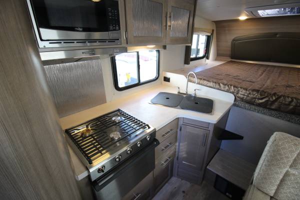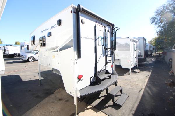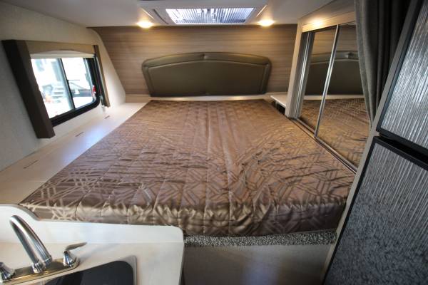 The Adventurer 89RB truck camper is 8’9” in length, with a 60x80 queen-sized bed, mirrored sliding double door wardrobe, and ample storage. The Face-to-Face Dream Dinette® along with the rear galley makes this 8’9” camper feel like it has the room of a slide-out. This classic style also offers the largest wet bath in the industry topped with a large, bright, and airy skylight. This comfortable and convenient model fits 6ft and larger short-bed and all long-bed trucks making the 89RB the most versatile truck camper in the industry!