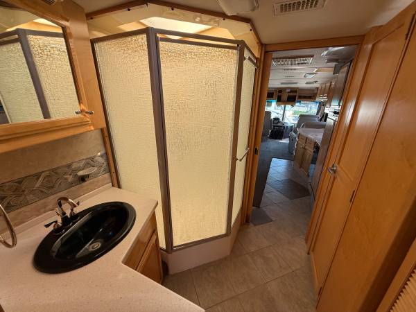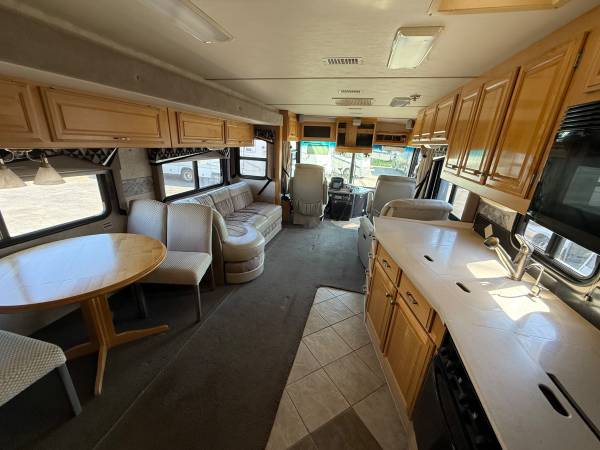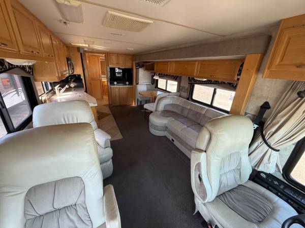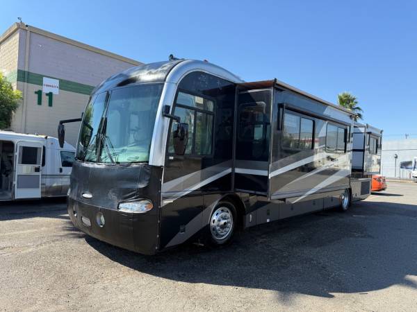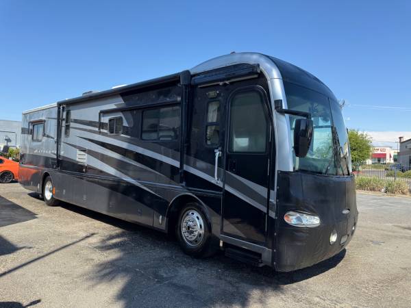 2003 FLEETWOOD REVOLUTION 38B HARD TO FIND IN GOOD CONDITION COMES WITH CLEAN TITLE, 108K(ORIGINAL MILES), 2 SLIDOUTS, ROOF A/C UNIT, MANUAL ENCLOSED AWNING, 7500W ONAN GENERATOR, CUMMINS 350HP 8.3L L6 MOTOR ON ROADMASTER CHASSIS, ALLISON 6 SPEED TRANSMISSION, FRONT COUCH THAT TURN INTO BEDS, REAR BEDROOM, AND MUCH MORE. LOADED! GREAT DEAL! HARD TO FIND! COME SEE IT TODAY!