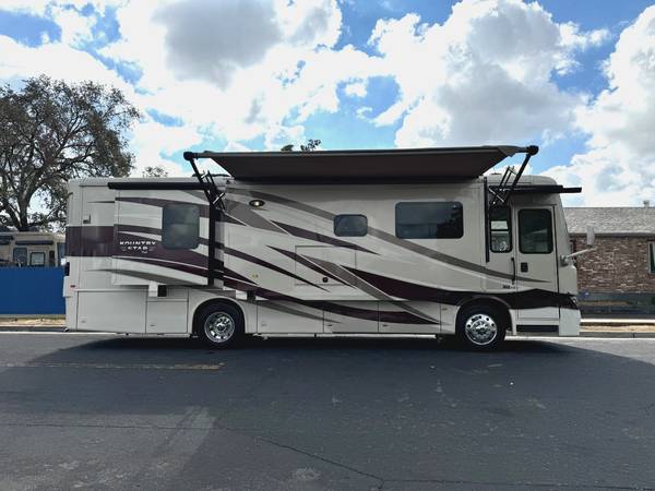 For sale is a 2021 Newmar Kountry Star 3412 Class A Diesel Pusher. If you’re in the market for a Quality luxury coach, you’re likely familiar with Newmar's exceptional build quality and attention to detail. This coach sits on a Freightliner XCR chassis and is powered by a 360HP Cummins ISB 6.7L diesel engine paired with an Allison 3000 MH 6-speed automatic transmission. The RV has 9,085 miles, measures approximately 34 feet 10 inches in length, has four slide-outs, and features a bright and spacious layout. It includes a 100-gallon fuel tank, 105-gallon fresh water tank, 65-gallon grey water tank, and a 45-gallon black water tank, with a GVWR of 33,400 lbs and a 10,000 lb towing capacity. This coach is equipped with full air ride and air brakes, and comes with a 8kW Onan Quiet Diesel Generator with 256 hours. Interior features include tile floors, solid surface countertops, hardwood cabinetry, a residential refrigerator, propane cooktop, and stacked washer and dryer. The coach has privacy shades and LED lighting throughout. Exterior amenities include full-body paint, upgraded LED headlights, all new batteries, exterior entertainment system with TV, patio and entry door awnings with LED lighting, roof-mounted satellite prep, and side and rear-view cameras. This luxury diesel pusher is built for comfort, performance, and reliability perfect for short RVing or extended travel. Please see over 200 pictures on our eBay listing.