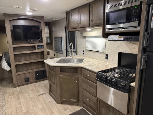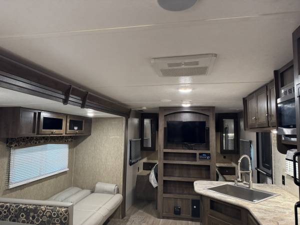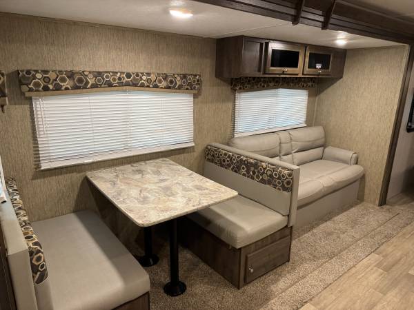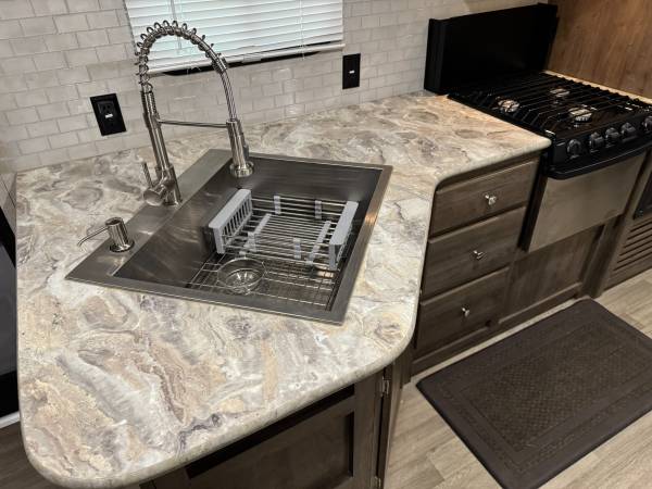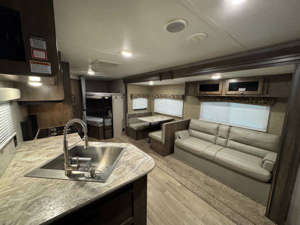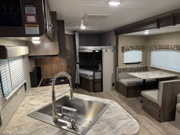 Full Kitchen, Full Bath with tub, 2 Oversized Bunks, Queen in master, Dinette Sleeper, Sleeper couch , Could sleep 10??