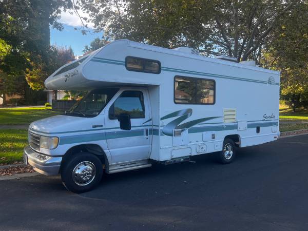 Selling our Ford jamboree searcher that’s in very good condition as seen in pictures, 54K original miles, power leveling jacks, full-size rear bedroom, sofa bed, Onan generator, roof AC, cab AC, power inverter with extra batteries, solar panel system, outdoor stereo, everything works perfectly, running water, hot shower etc. new registration, all is well kept under the carport and covered.