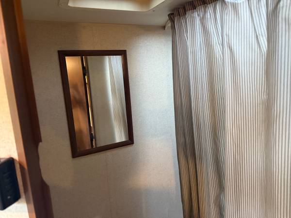Living space: Dinette with bench seats, storage cabinets, and pre-wiring for a TV with an antenna.