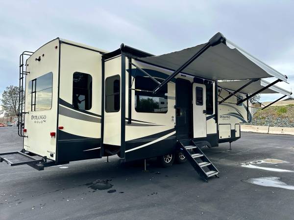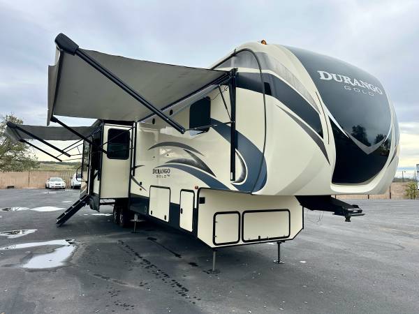 I’m selling a 2018 Durango Gold g384rlt. It is a 40 foot trailer , GVWR is 15,000 lbs. Comes with 3 huge slide outs. 6 point self levyelling hydraulic system. Has 2 big electric awnings, 2 A/C units. 3 way refrigerator, frame less windows , night and day shades. Everything works as it should.