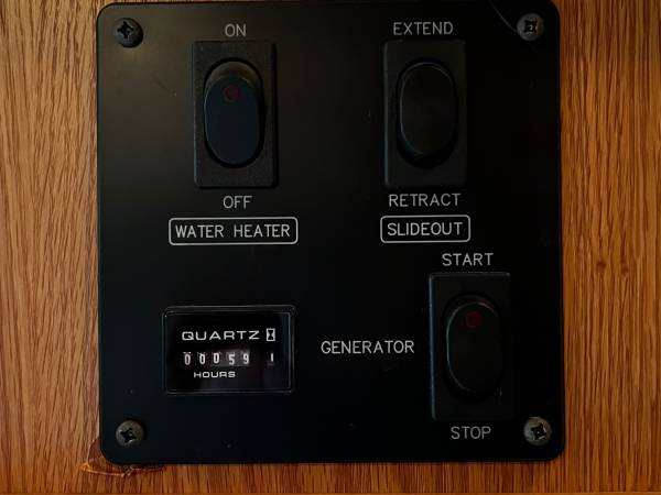 include roof A/C, patio awning, refrigerator, oven, microwave, and a CD player Electric water heater water pump
