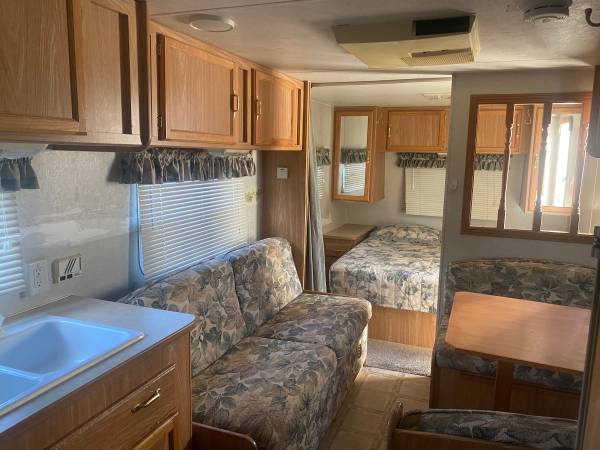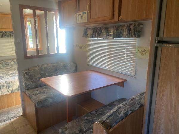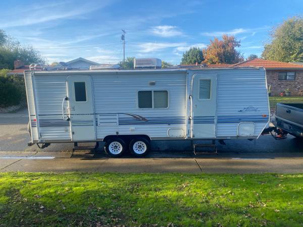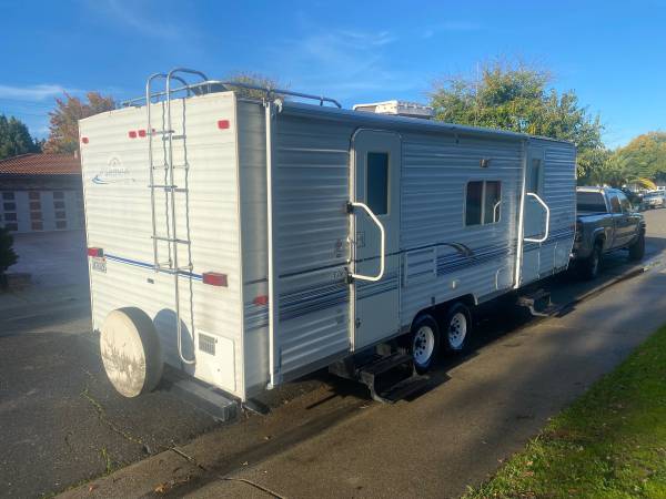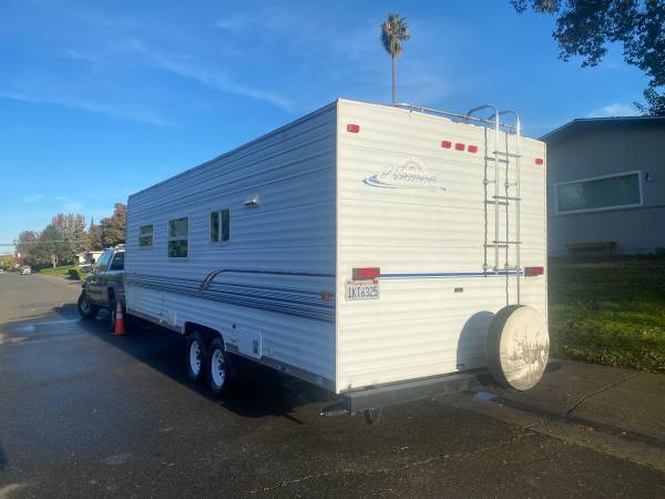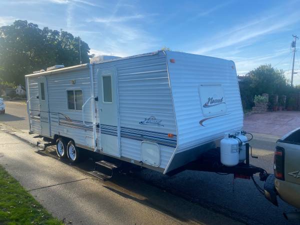 Hello I have a 2004 nomad travel trailer sleeps six very comfortably. It is fully self-contained 24 foot roof AC all appliances work excellent non-pet non-smoking unit has double sinks three burner stove with an oven a conventional microwave a full size refrigerator and freezer has a toilet sink with a shower tub everything in great condition all original must see to appreciate 5800 or best offer no issues whatsoever clean title title please call 916-534-5413 for further info. Please do not hesitate to call and ask thank you for reading my ad. Have a blessed day.