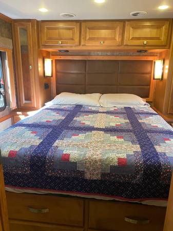 New AC in main cabin (2025), alder cabinetry, New tires (2023), oil & filters changed regularly, Blue Ox air-brake tow package, Safety T Plus easy steer, Air Suspension & Auto Leveling, ONAN 6 KW Diesel Generator, Solar Screens
