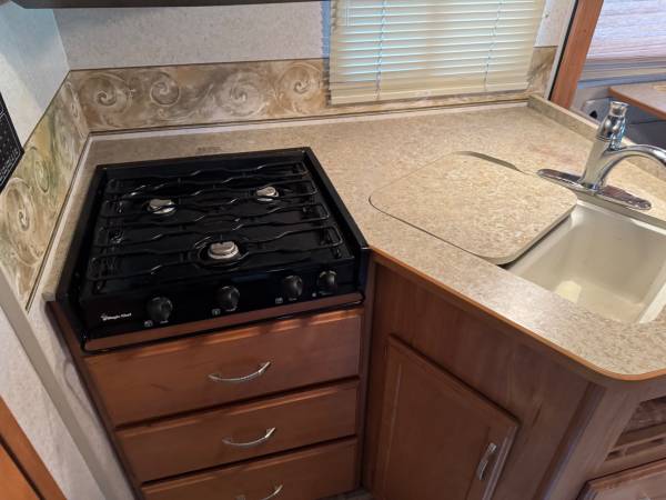 It has one slide out, newly re upholster interior, new Roku TV, new smart radio in dash board, new roof air conditioner,