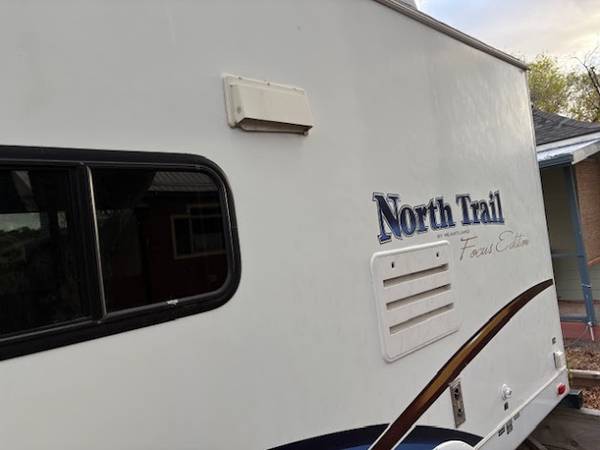 Very clean 2011 Heartland North Trail - FX17 Travel Trailer. Overall length is 22’ long from the tip of the hitch to the back bumper. Current CA registration as of 5/2025. Light weight. No leaks. AC blows cold. Refrigerator & Freezer in excellent condition. Toilet and Shower. Back up Camera. Duel propane tanks. Two batteries. Solar trickle battery charger. Electric tounge jack. Electric awning. Stabalizer hitch and sway bars included. Includes wheel covers and RV cover. Dry weight is 3780 lbs.