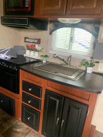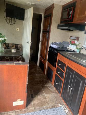 We are selling our 2012 Wildwood travel trailer by Forest River 27 foot fully self-contained with full kitchen queen size walk around bed