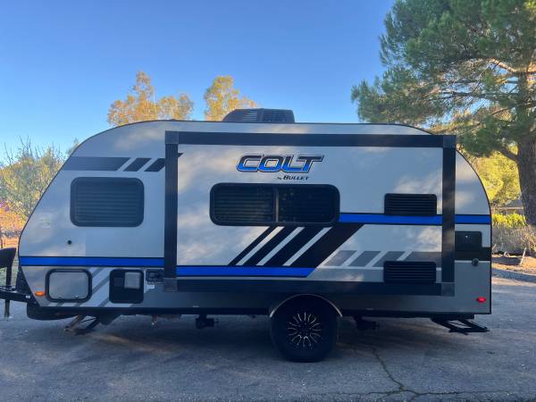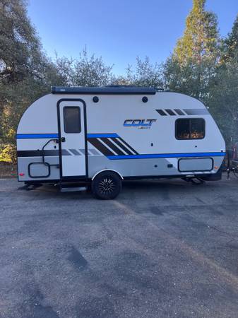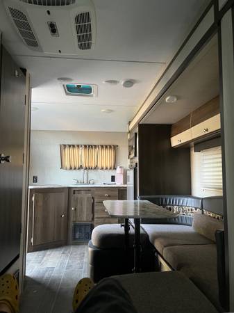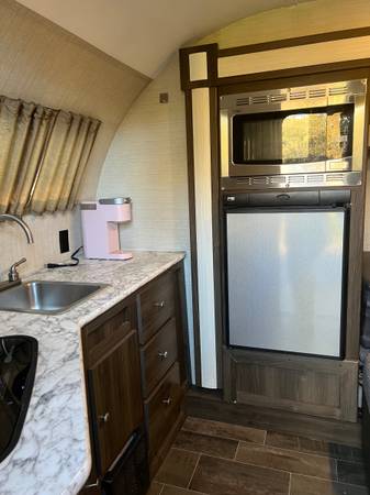 Lightly used 17ft rear kitchen, everything is good condition. 2 burner stove, microwave convection, heat and AC, shower, toilet, awning and power jack. Lightweight easily towed.