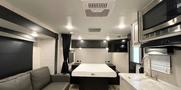 Lightweight, modern, and easy to tow. The Range Lite Air 18RBS by Open Range is a perfect couples + a couple kids trailer — comfortable, compact, and loaded with smart features.