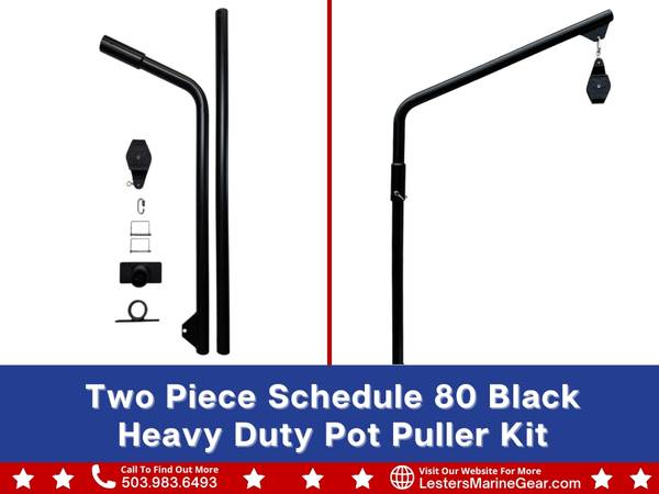 ➤ The schedule 80 heavy duty two piece manual pot puller is the ideal heavier load rating choice for manually pulling pots. Three Piece option is convertable to motorized pot pulling in the future if necessary.