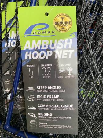 Pit Bull Hoop net: $80 Tax Included Extra heavy netting and deeper bottom net to keep crabs in when pulling $80 ea. 14 Lbs. Premium hoop net, best on the market, designed for crab
