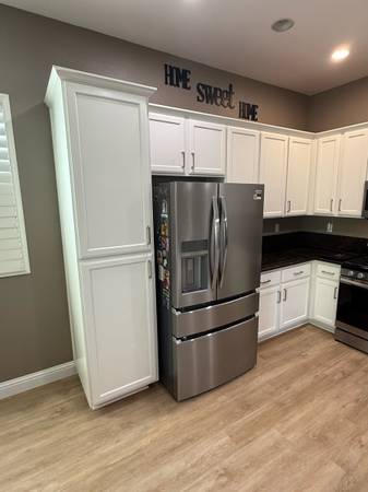 We do full cabinet replacing with laminate and or painting, we can add cabinets, replace doors, replace moldings, drawers, and more! Counters drywall and painting..