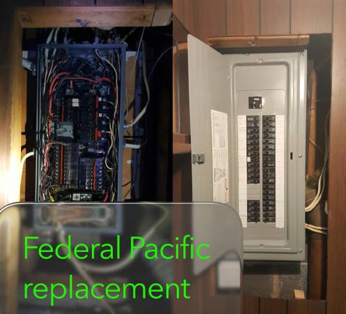 • Panel placement from dangerous, out of code Zinsco, Federal Pacific., Stab-Lok, Sylvania