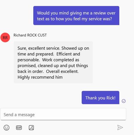 Im a local family man seeking additional side work and would be glad to help with your electrical needs. I offer skilled service at a fraction of what you’d typically pay. Pictured are personal reviews, and w/my company.