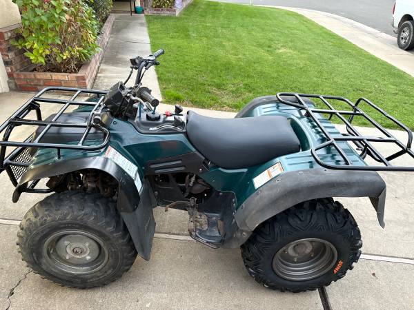 01 Suzuki 300 king quad 4x4 with low hours and runs great. Has new battery and rear tires, only thing wrong with it is plastics have been broken down over the years but are stitched up and work just fine.everything works as it should and still has the original tool kit and owners manual in it.