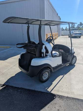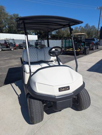Good Condition 2024 48V Trojan Batteries Custom Diamond Stiched Seats Double Golf Bag Attachment Double Sand Bottles & Mounts Rear Basket Storage New Long Soft Top Good Tires Good Brakes...