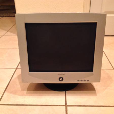 Works great. Great for video games. Very difficult to find in this condition vintage monitor. eMachines 17f3 model 1772ED 2005 Color Measuring diagonally 16 inches. Email if interested