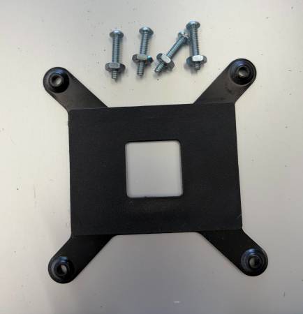 The official Intel heat sink works perfectly. Includes mounting and nuts/bolts.