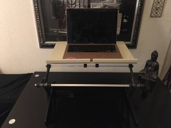 Use this retractable stand and give yourself a break from sitting down during Zoom or other video chats.