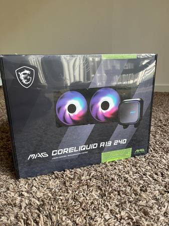 MSI AIO Liquid Cooling System still plastic wrapped in box. Full details: https://www.amazon.com/MSI-MAG-Coreliquid-A13-240/dp/B0DM4CBKFY