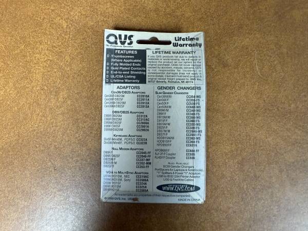 QVS CC2000A AT MOUSE TO XT DB9M/DB25F ADAPTER DSUB9 9 PIN MALE 25 PIN FEMALE