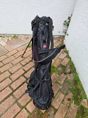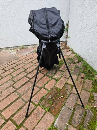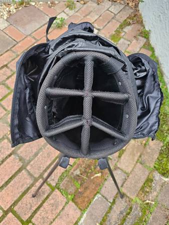 Sun Mountain 2.5 golf stand bag, navy dual shoulder strap rain hood 6 slots for clubs very light