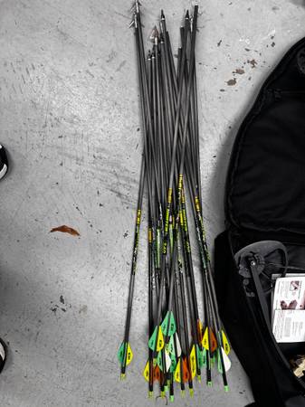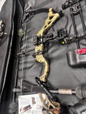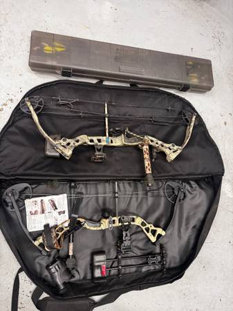 Two lightly used compound bows. Bowtech Diamond razor edge and infinite edge. Comes with various arrows, Range finder, release, soft shell case for 1. Bow archery hunting