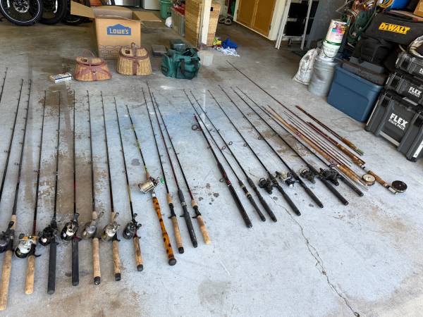 I have 3 generations of fishing equipment for sale. Antique Rods, Reels, Tackle. Also Fly, Spinnin, Bass, Sea, etc... SELLING AS A LOT, SO DON'T ASK TO SEPARATE. FIRST $500 FIRM TAKES ALL. WILL NOT...