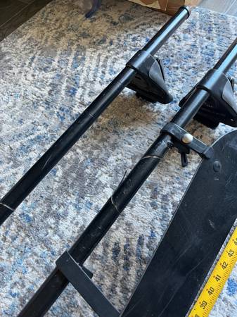 As set of Yakima round bars. 58” - has the q towers and a telescoping bar for loading up a kayak. Includes wind deflector