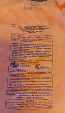 Ski Vest in very good condition. Snaps work great. No issues. Fit's girl chest size 26-29 inches. Weight 50-90 LBS Can be used for water skiing, jet skiing, paddle boarding, kayaking, canoeing. life...