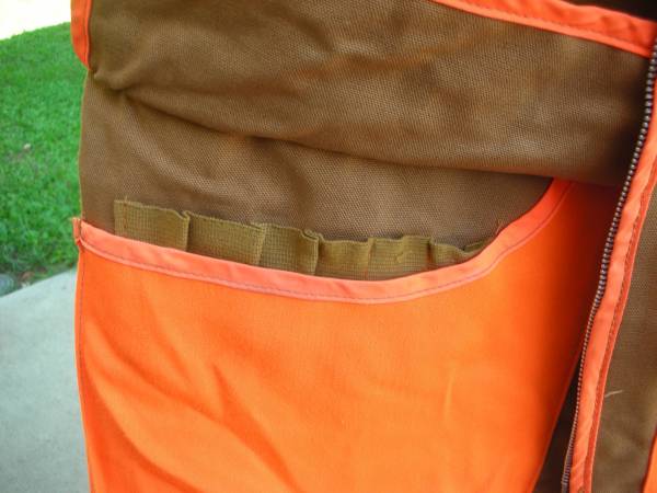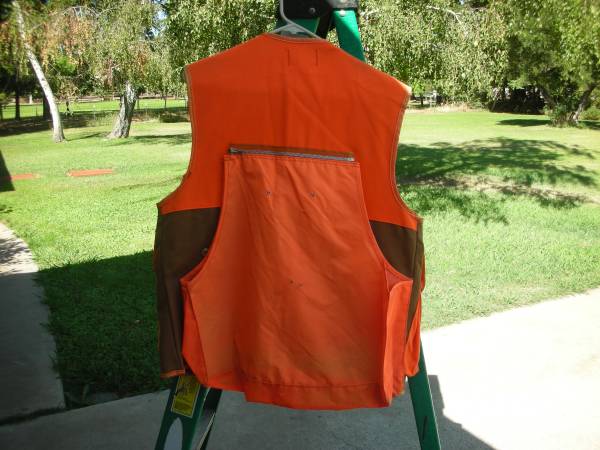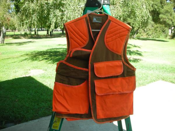New safety orange hunting vest--Never used JC Penney Hunting Apparel 2 large pouches inside, rear outside pouches Front pockets and front flaps for shells $30 Landline only; no cell phone; no texts,...
