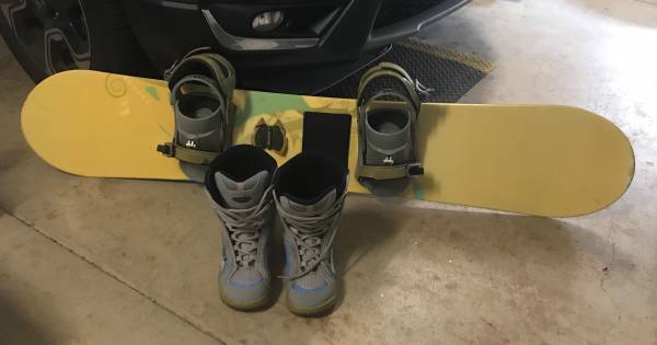 Used but still in good condition with no damage (see pictures for condition). Board is 60” and shoes are women size 7. $75 for the set. If interested, text to nine one six-eight zero four-eight...