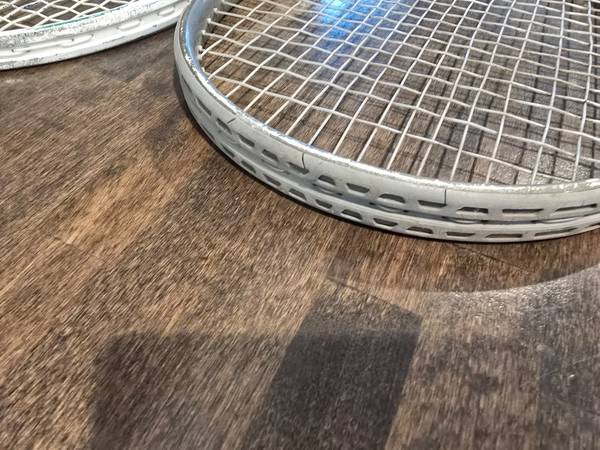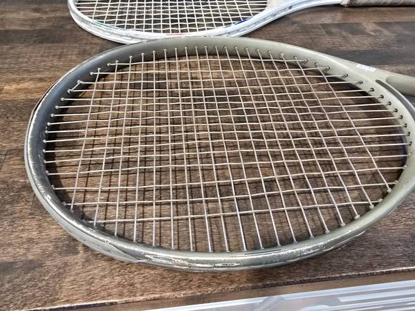 Prince CTS Lightning 110 & J/R Tennis Racket Racquets for $15/both. They have wear as pictured. The adult one has tape on the handle, but the handle isn't falling apart
