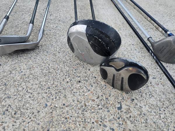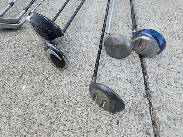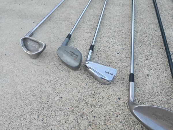 Assorted Vintage Golf Drivers & Wedges Clubs for $60/all. Some have more wear than others. They all are relative to their age. The Taylormade bag is dirty and has graphics peeling on one side.